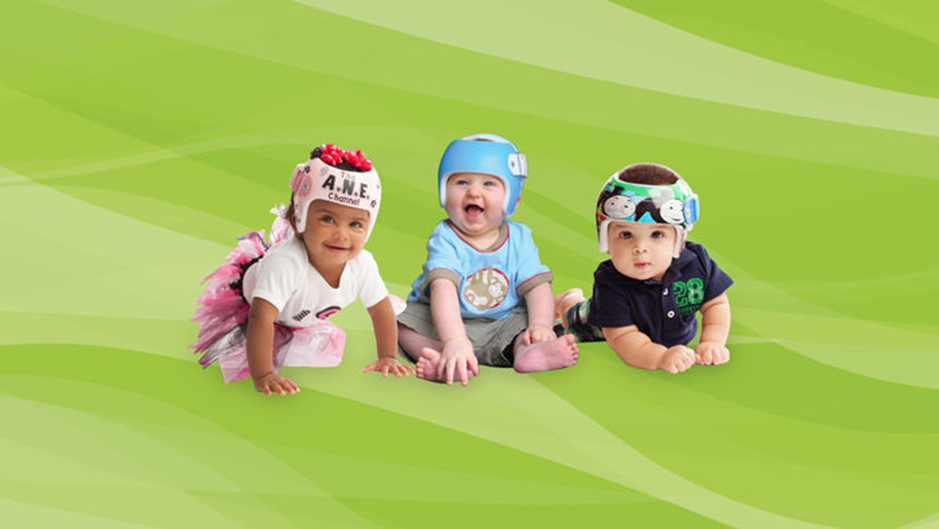 머리 모양이 변형된 아기들이 두상을 바로잡기 위해 착용하는