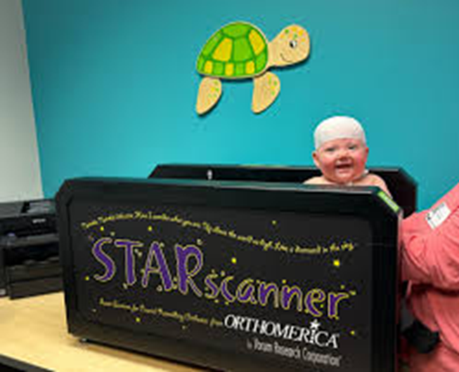 스타스캐너를 통해 아이의 두상을 정밀하게 측정합니다.